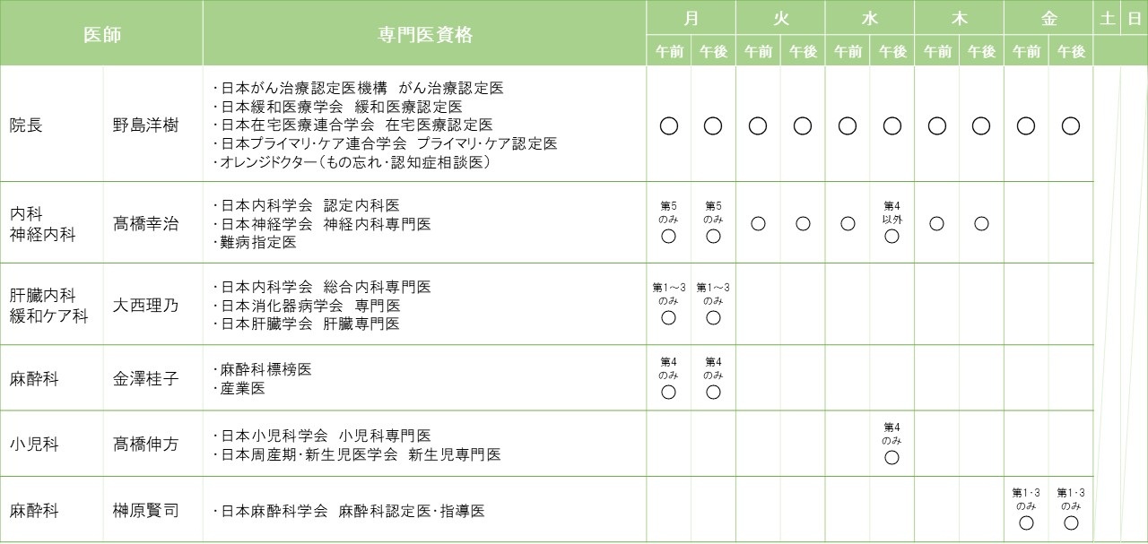夜間・休日連絡先 のじまホームクリニック TEL 084-970-1711 担当者 院長 野島洋樹